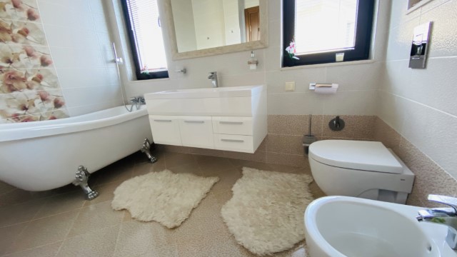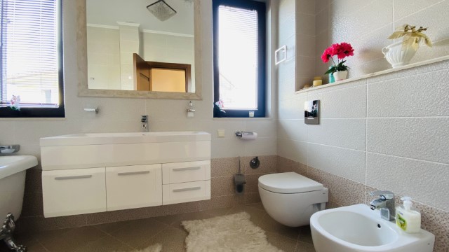The houses are in a finished state. They are equipped with everything necessary for your luxurious accommodation. The infrastructure includes already constructed asphalt road to the complex, street network, sidewalks, grounds, street and park lightning, power substation, water-conduit and effluent treatment plant. The electrical wiring and plumbing are done according to European quality standards. The buildings are with monolithic construction, WIENERBERGER bricks, with perfect hydro, thermal and sound insulation, armoured doors and laminated HDF interior doors, six-chamber PVC system with window glazing. The roof system is BRAMAC. The access to the complex is under control which provides peace and security.