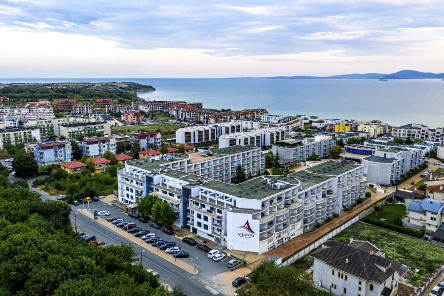 Location: Atlantis Beach Resort is located just 100 meters away from the wide beach on the territory of Sarafovo South, shops, pharmacies, kiosks, doctors' offices, nurseries, kindergarten, school, restaurants, bars are within walking distance, 2 km from the Airport, about 9 km from the center of Burgas city and about 25 km from Sunny Beach Resort. It is located in peace and quiet and a few meters from the dynamics of the city. By bus or car, you can reach the center in minutes. Sarafovo is one of the most preferred areas in recent years for living in the city of Burgas.