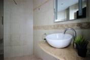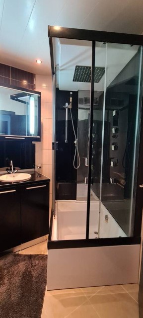 Finishing works: The apartment is fully finished - terracotta tiled and laminated floors; latex painted walls and ceilings; placed MDF doors; placed PVC joinery; shower/bathrooms with toilets - fully finished and equipped, terracotta tiled floor, faience on the walls, sanitary equipment, bathtub, shower cabin, water heater; installed Air conditioning in all rooms.