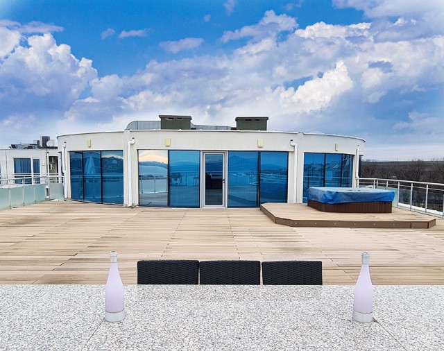 Distribution: corridor, sunny, bright and spacious living room with kitchen and dining area, three bedrooms, two shower/bathrooms with toilets, storage/utility room, an extensive terrace with a jacuzzi and a beautiful view of the sea - here you can spend unforgettable summer evenings with friends, have a barbecue or simply admire the sunrise and sunset, a second terrace with access from two of the bedrooms.