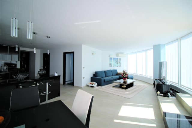 We offer for sale a spacious, luxury furnished, three-bedroom apartment with a total built-up area of 211,27 sq.m and a built-up area of 184,40 sq.m, which is situated on the fourth floor in a four-storey residential building. The distribution and size of the rooms provide maximum functionality and comfort in each room. The large terrace with an impressive sea view allows for many pleasant moments of relaxing tranquility and shared moments with loved ones. The huge advantages of the apartment are the three bedrooms and the two shower/bathrooms, which is an extremely important advantage, especially for families with children.
