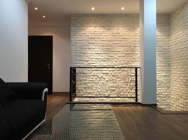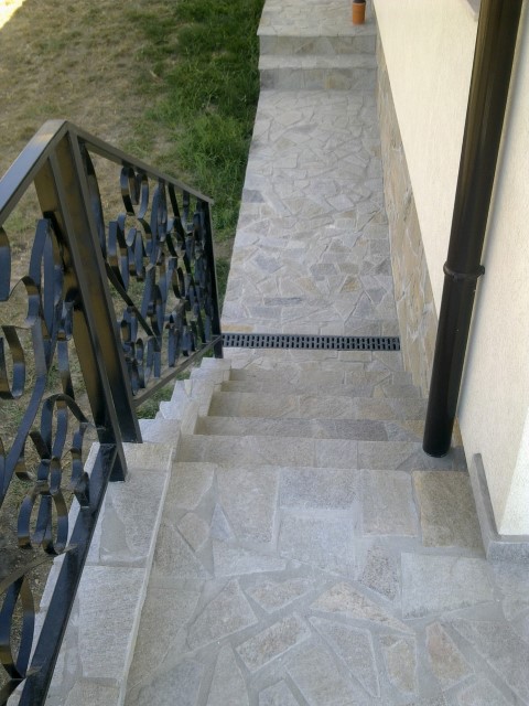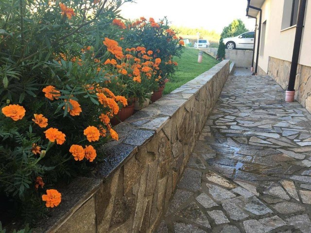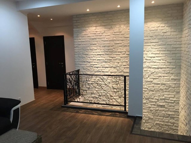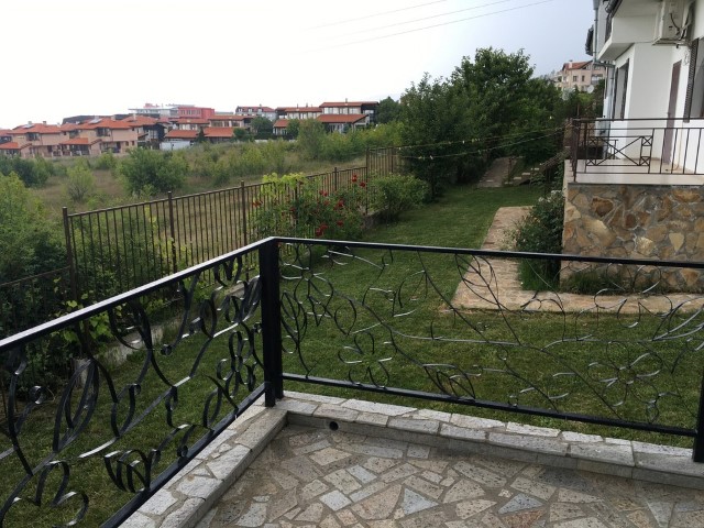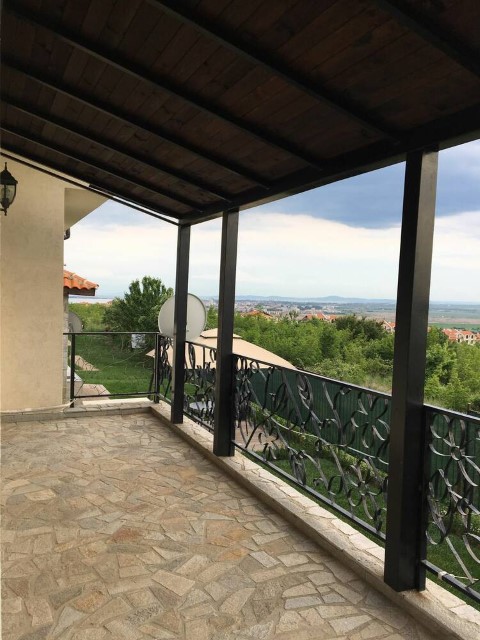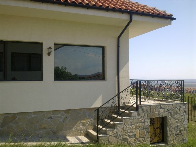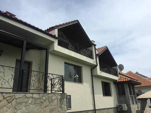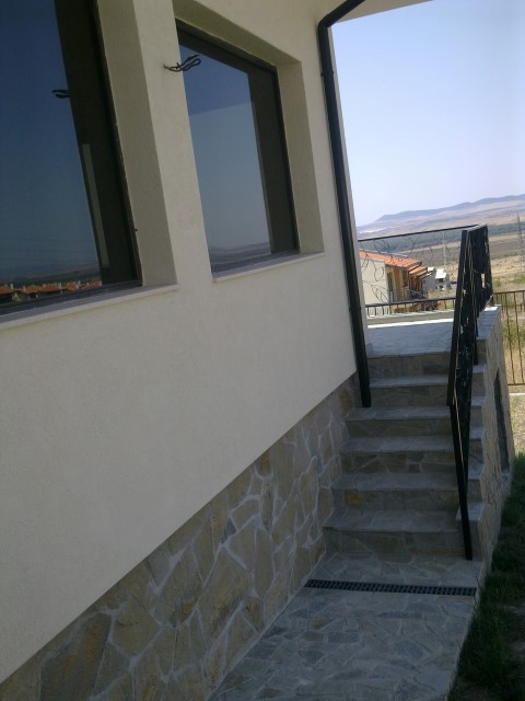 Finishing works: The house has monolithic reinforced concrete construction, brickwork, heat- (styrofoam with a thickness of 8 cm) and hydro-insulation and new tiled roof. The house is fully finished - flooring - fine stoneware tiles in the living rooms, entrance halls and on the terraces and laminated parquet in the bedrooms; decoration and latex painted walls; suspended and latex painted ceilings; placed entrance and MDF interior doors; placed 5-chamber PVC joinery with double glazing TROCAL brand, dark-brown color, KA-glass; sanitary units - fully finished and equipped, terracotta tiled floors, faience on the walls, sanitary equipment; designer wrought iron railings on the staircase and terraces.