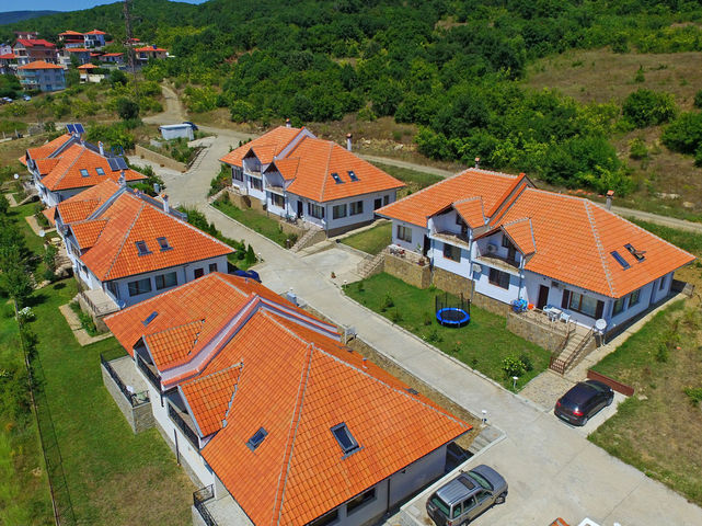 Location: The complex is located about 3 km away from the beach in Sunny Beach Resort and about 35 km away from Burgas city and about 30 km away from the International Airport of Burgas. The complex has year round access by asphalt road. The favorable location of the holiday village, at the top of a hill at the foot of the Stara planina Mountains, reveals an incredible panorama to Nesebar bay, Sunny Beach Resort and the Black Sea. And the neighboring forest, the silence and the fresh air makes for a relaxing holiday.