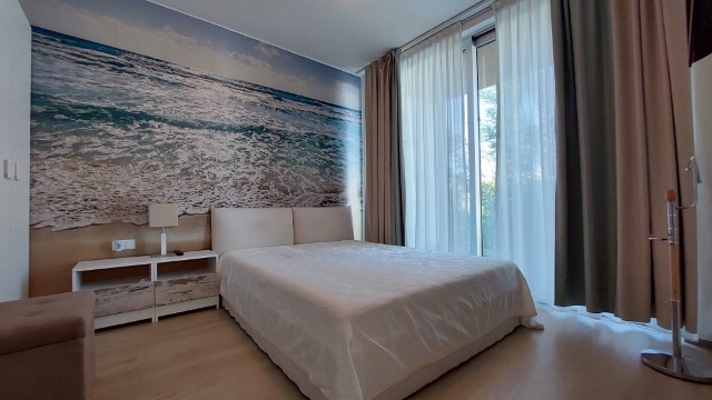 We offer for sale a modern, luxury furnished, two-storey townhouse - villa with a total built-up area of 121,34 sq.m, a built-up area of 56,65 sq.m, with included private yard - garden with an area of 188,33 sq.m. The house has an Act of Permission to use granted. The house has individual accounts for electricity and water. The house is suitable for year round living. Enjoy the pleasure and prestige of living in a luxury property - a house located just meters away from the beach.