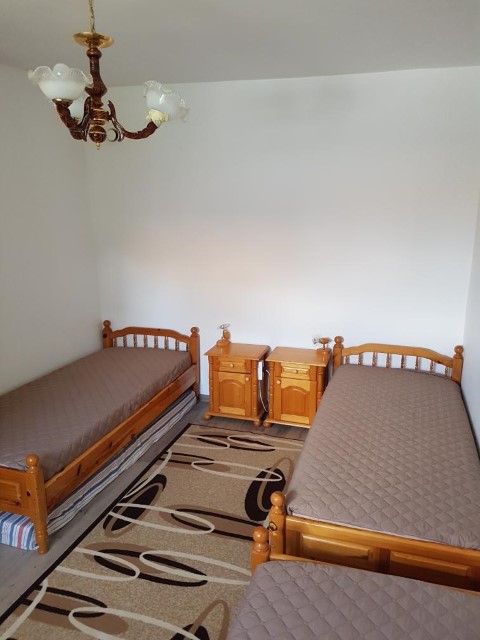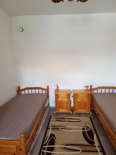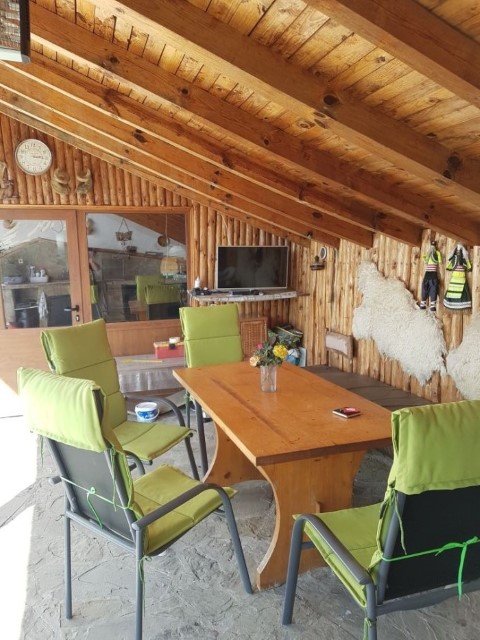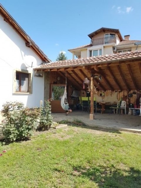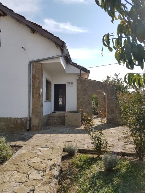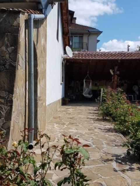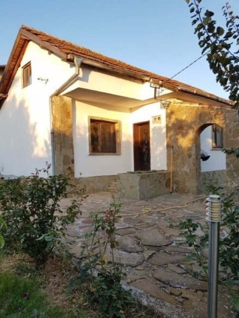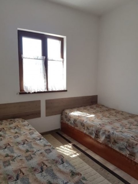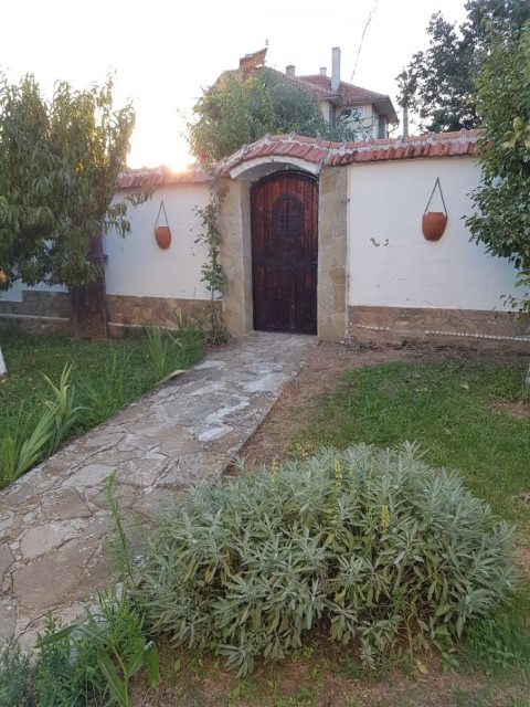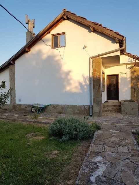 Description: We offer for sale a bungalow about 5 km from Sunny Beach Resort. The house has a total built-up area of 70 sq.m. It consists of living room, large kitchen, two bedrooms, shower room with toilet and shed for outdoor meetings. The house has a solid construction, made of bricks, painted facade, repaired roof. The house is fully finished: floors - laminate, terracotta; walls - painted with latex, wooden paneling; ceilings - painted with latex, wooden paneling; bathroom with WC - fully finished and equipped, terracotta tiled floor, faience on the walls, sanitary equipment, water heater; PVC and MDF doors; PVC joinery; new electrical wiring; new plumbing and sewerage installations; installed a fireplace in the living room. The plot of land has an area of 705 sq.m, surrounded by a solid fence with a gate and parking lot, an excellently landscaped yard, alleys and planted fruit trees.