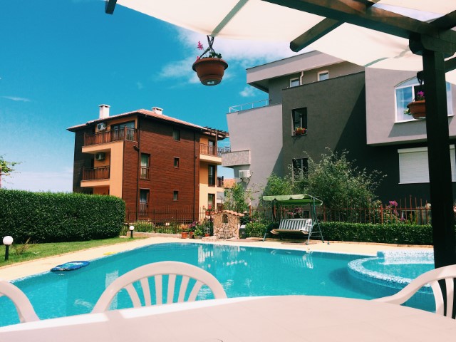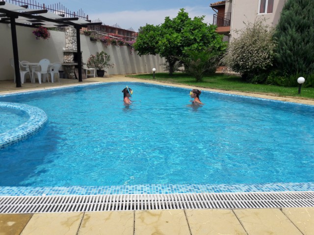 The property is located about 30 km away from Burgas city, about 1 km away from the center of the town and 200 meters away from the beach. There is a mayoralty, post office, community center, shops, cafes, restaurants, school, kindergarten in the settlement. About 6500 people live in the settlement. The building is located in a quiet and peaceful place for rest and permanent living. We offer for sale two neighboring, separate apartments - studio and one-bedroom apartment. The two properties are next to each other - have a common wall and a common yard - adjacent green space. They are currently successfully rented out during the summer season, and the lovely pool helps a lot with reservations. Suitable for a holiday of 2 friendly families.