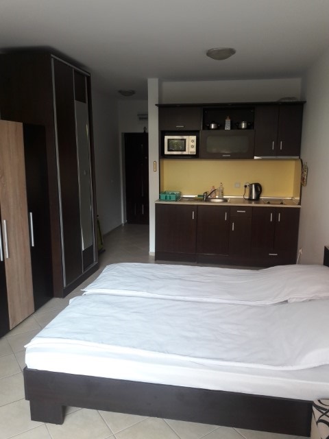 Furnishing: The studio and the one-bedroom apartment are for sale fully furnished and equipped. They are for sale renovated with new furniture and sunbeds, brand new refrigerator (in the one-bedroom apartment), brand new TVs (32 inches) complete with Set Top Box devices for TVs and routers, Internet and Comnet TV (fee BGN 30 per month, only for the months in which it is needed), i.e. the expensive installation fee will not be paid either. The studio has 2 single beds (80x200 cm), which are gathered next to each other, become a large bedroom and 1 sofa bed (115x190 cm), which makes it suitable for 3 people or even for a family with 2 small children. The one-bedroom apartment has a large bedroom (140x200 cm) and 2 single beds (90x200 cm), which are gathered next to each other, become a large bedroom, which makes it suitable for 4 people. They are for sale with a large amount of bed linen and towels.