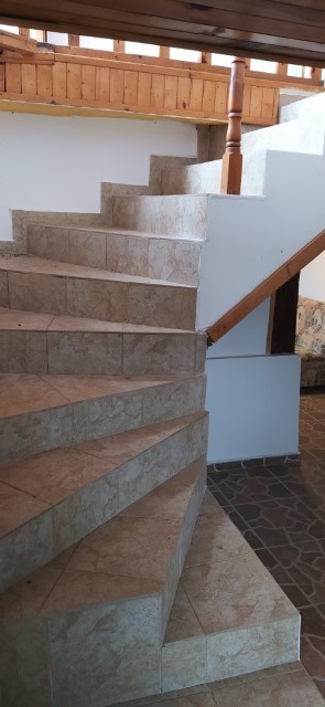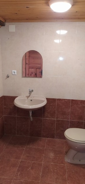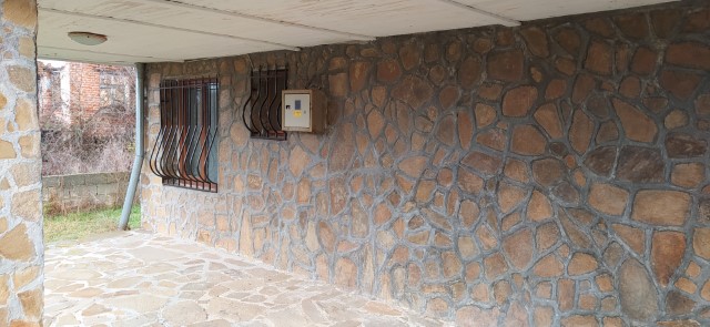 Finishing works: The house has been renovated - repaired roof; new gutters; painted and thermally insulated facade; new electrical wiring, plumbing and sewerage. The house is fully finished - terracotta tiled and laminated floors; latex painted walls; paneling on the ceilings; placed PVC joinery with external metal bars on the first floor; placed PVC entrance and wooden interior doors; sanitary units - terracotta tiled floor, faience on the walls, paneling on the ceilings, sanitary ware, shower cabin, water heater.