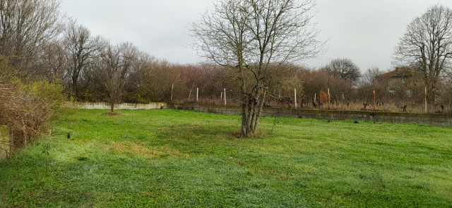 Yard: The plot of land has an area about of 1000 sq.m, flat, partially surrounded by a solid fence. There is a parking lot in the yard. In the yard are planted fruit trees.