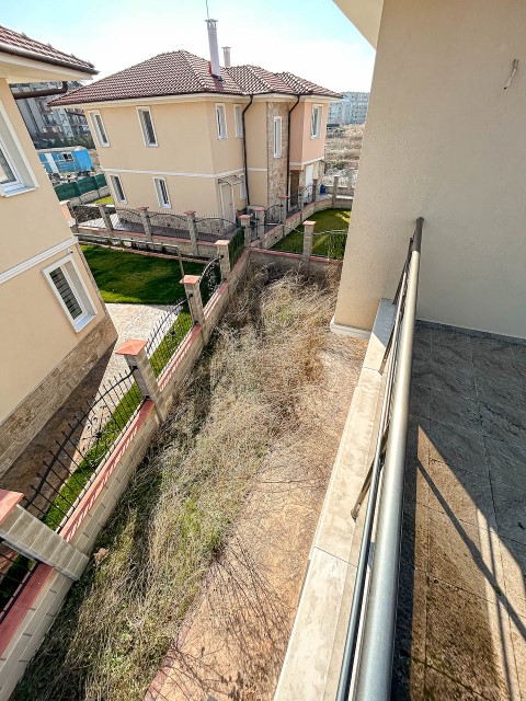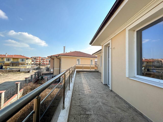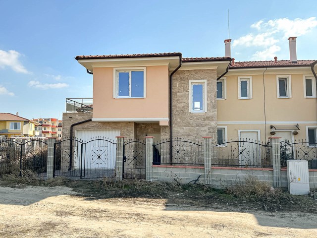 For sale a new, spacious, semi-detached, two-storey house - a townhouse with a garage in a gated complex, about 500 meters away from the beach in the town of Pomorie, Pomorie municipality