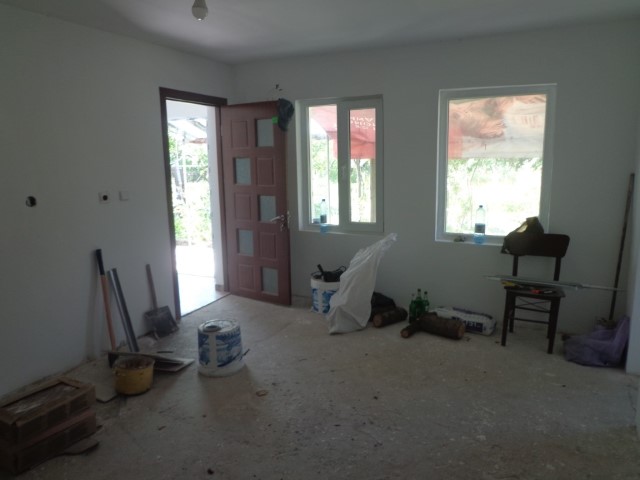 Finishing works: The house has a renovated roof and gutters, new electrical installation, plumbing and sewerage. The house is partially finished - terracotta tiled, laminated and screed on the floors; partially latex painted walls and ceilings; placed PVC joinery; placed PVC entrance and PVC and MDF interior doors; sanitary unit - fully finished and equipped, terracotta tiled floor, faience on the walls, sanitary ware, water heater.