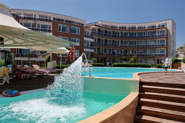 The holiday complex is situated 200 meters from the sea and 5 minutes walk from the beach. The complex consists of 2 main buildings - A and B, 149 apartments in total and all of them have marvelous sea view. Building A consists of 28 apartments. Building B - 121 apartments. All 149 - mixture of studio, 1 - and 2 bed apartments.
