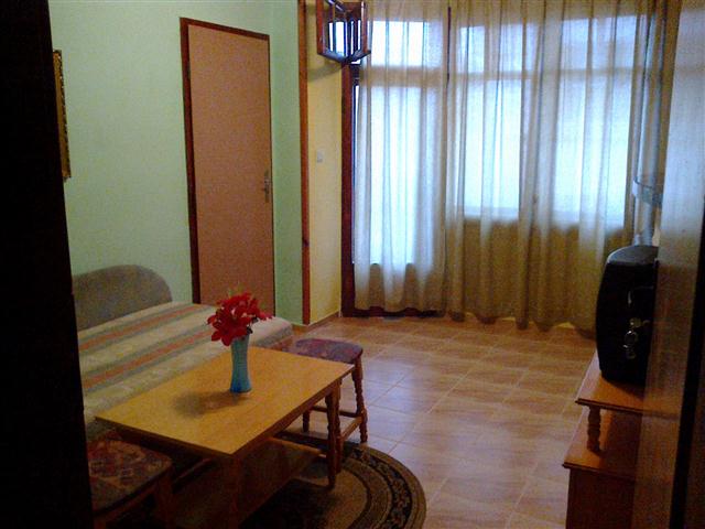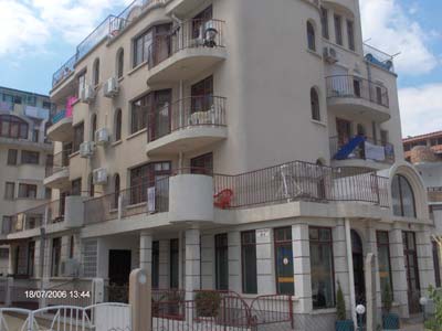 The apartment is on the second floor in a new five floor brick building around 200 meters from the beach in an area between the new and the old part of the town of Nesebar. Close to the building there is a school, shops, a cafe and a wonderful park for relaxation. The town is located 36 km from the regional center of Burgas, 20 minutes drive from International Airport of Burgas and 3 km from the famous sea resort Sunny Beach. The total area of apartment is 47 sq.m, built-up area is 41 sq.m. The apartment consists of bedroom, living room, furnished and equipped kitchenette and bathroom with WC. The flooring is terracotta and latex on the walls; bathroom with WC – terracotta, faience, sanitary wares, bath and water-heater.