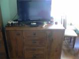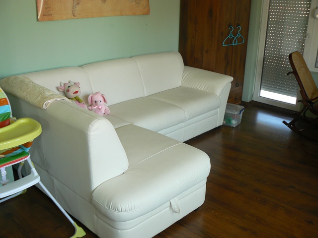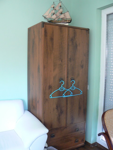 The apartment is fully furnished: fitted and equipped kitchen, sofa bed, wardrobe. Also all appliances, corner bath, wardrobe, table and chairs, commode, shutters on the windows of the large terrace, modem with Internet and TV.
