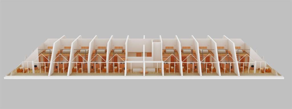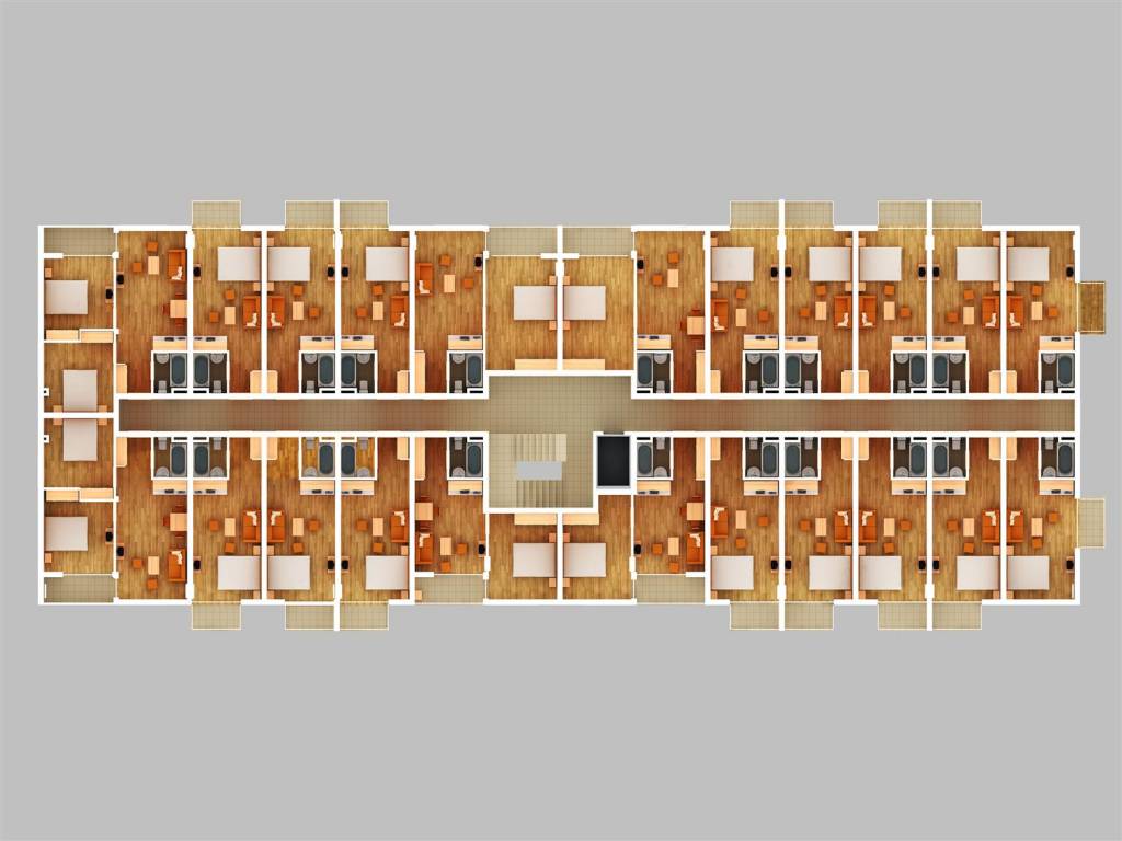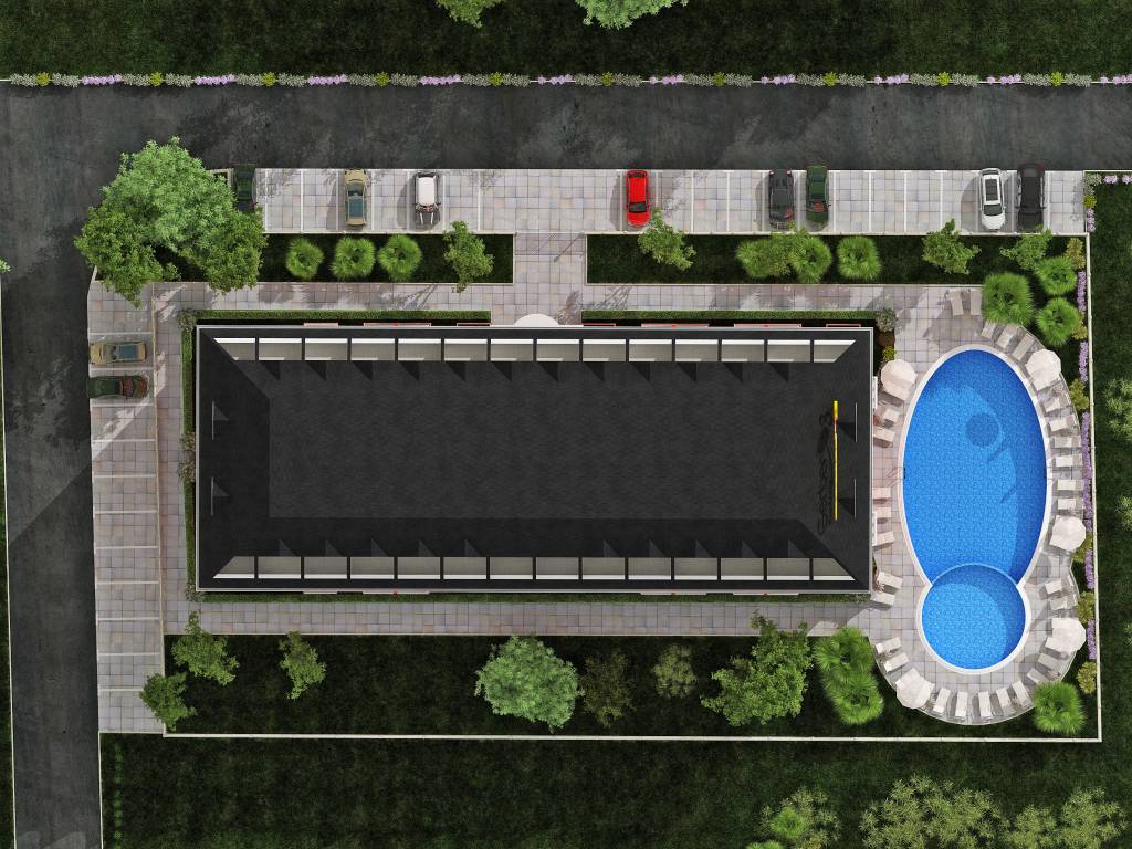 The building is designed for seasonal use, but it is possible to live there all year round. Most of the apartments are studios and 1-bedroom apartments. On the last two floors of the building there will be 14 maisonette with one or two bedroom with an internal staircase. All of the necessary communication and security systems, cable TV, Internet, and air conditioning are provided.