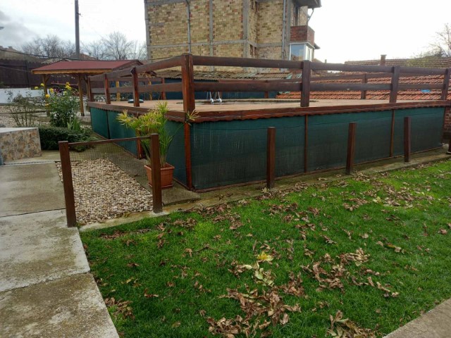 Finishing works: The whole house have been fully renovated. The roof is new and has no problems. New wiring, plumbing and sewerage. The house is fully finished - terracotta tiled and laminated floors; latex painted walls; latex painted and wood paneling on ceilings; placed PVC joinery; placed PVC entrances and MDF and PVC interior doors; sanitary units - fully finished and equipped, terracotta tiled floor, faience on the walls, sanitary ware, shower cabin, water heaters; the heating is solved by means of central steam heating with a pellets burning stove and with installed radiators in all rooms; installed Air conditioning on the first floor.