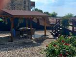 Yard: The plot of land has an area of 824 sq.m, flat, surrounded by a solid fence. There is a large garage, parkingfor several cars, swimming pool, shelter with recreation area, barbecue, additional outbuilding with built-up area of 18 sq.m in the yard. In the yard also has a concrete paving for easy maintenance. In the yard are planted fruit trees, trees, flowers, shrubs, landscaping.