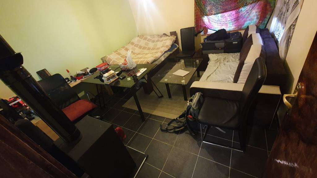 - 2nd bedroom with a black glass dining table, 4 suitable chairs; It is currently used to store most things and tools;