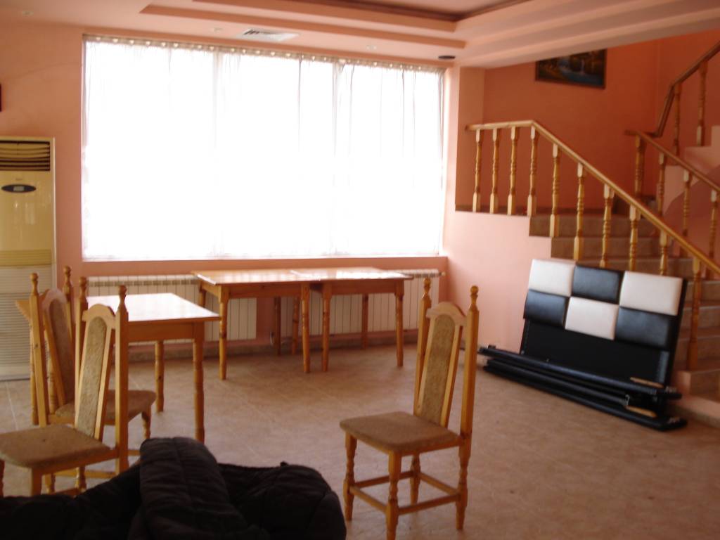 Ground floor – an entrance hall, a boiler room, a rest room, a toilet, a storage area, a bathroom with WC, a kitchen. The floors are tiled , the walls are plastered and the windows are PVC . There is an elevator for the food from the kitchen. An internal staircase leads to the second floor;