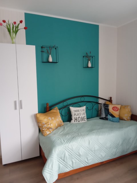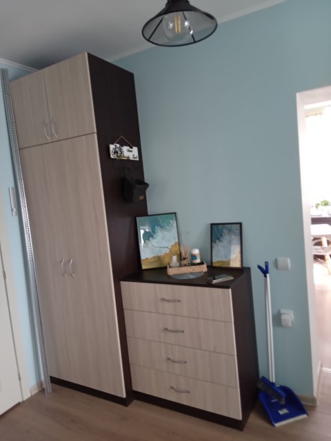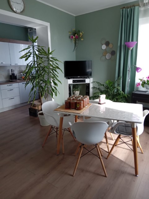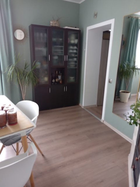 Distribution: entrance hall, corridor, living room with kitchen and dining area (area of 22 sq.m), two bedrooms (area of 14 and 13 sq.m) and shower room with toilet.