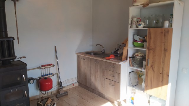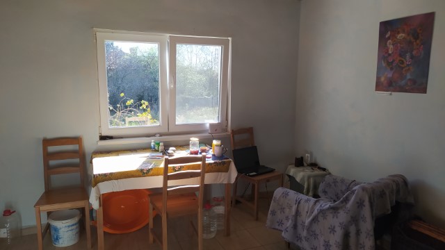 Finishing works: The house has been renovated - new roof, thermal insulation of the facade with 5 cm thick styrofoam, new plaster, new electrical installation, water supply and sewerage. The house is fully finished - terracotta tiled floors; latex painted walls; OSB on ceilings; placed PVC joinery; placed PVC entrance and PVC interior doors; sanitary units - fully finished and equipped, terracotta tiled floor, faience on the walls, sanitary ware, water heaters; heating is solved by means of a log burning stove with water circuits and radiators in all rooms.