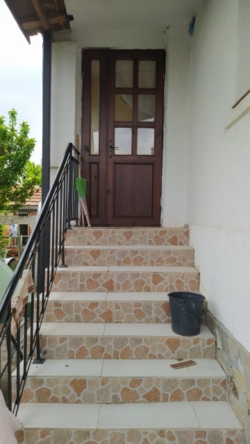 Finishing works: The house is after a major renovation carried out in 2010-2011, a renovated roof, waterproofing, external thermal insulation of the facade, increase in the height of the first floor, new electrical installation, plumbing and sewerage. The house is fully finished - terracotta tiled and laminated floors; latex painted walls and ceilings; placed PVC joinery; placed entrance and PVC and wooden internal doors; shower room with toilet - fully finished and equipped, terracotta tiled floor, faience on the walls, sanitary ware, water heater. Heating is provided by means of a log burning stove in the dining room, and throughout the house there is a pipe installation for central heating, but no radiators have been installed.