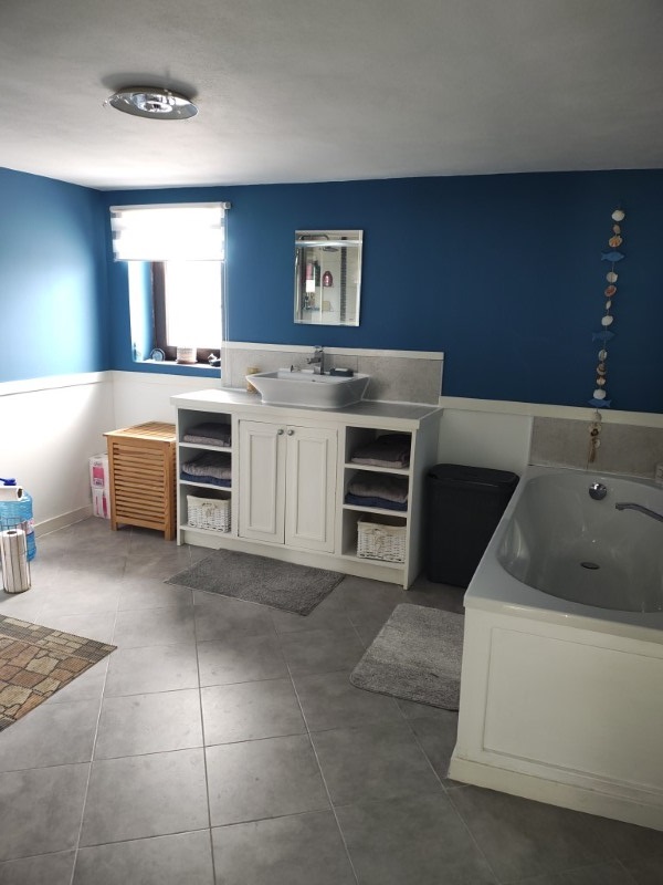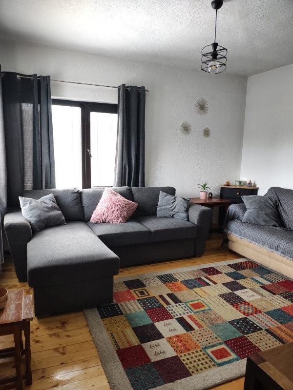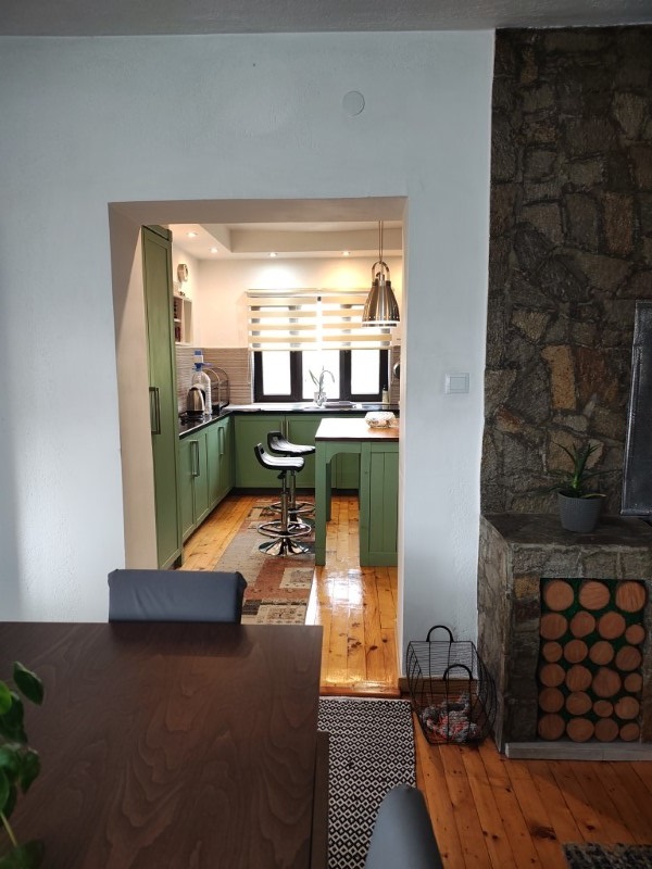 Finishing works: The renovation of the house started in 2020. The house has concrete slabs between the floors, a renovated roof, painted facade, new electrical wiring, plumbing and sewerage. The house is fully finished - terracotta tiled, laminated and wooden floors; latex painted walls and ceilings; placed PVC joinery; placed PVC entrance and MDF interior doors; sanitary unit - fully finished and equipped, terracotta tiled floor, faience on the walls, bathtub, shower cabin, sanitary ware, water heater; heating is solved by central steam heating with an installed log burning stove with a water circuits and radiators and a convector throughout the house, as well as a log burning stove in the dining room; fireplace/barbecue in the summer kitchen.