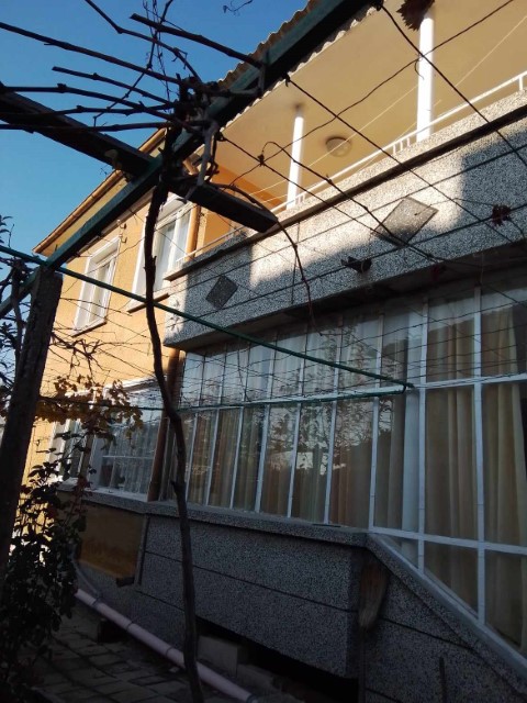 Yard: The plot of land has an area of 464 sq.m, flat, partially surrounded by a solid fence. There is a summer kitchen with a built-up area of 28 sq.m, an external bathroom and toilet, a garage, three sheds (one with a built-up area of 24 sq.m) in the yard. In the yard are planted fruit trees, vine trellis, flowers, shrubs, landscaping. Bonus - about 20 m3 of wood.
