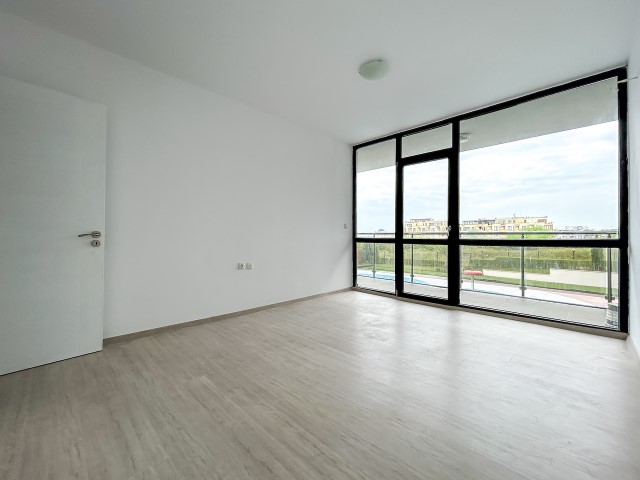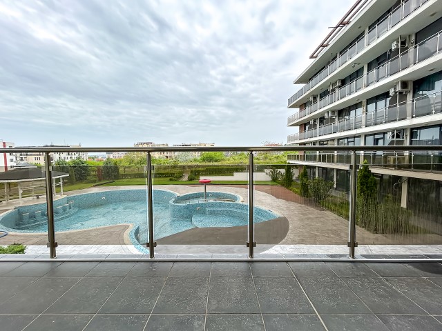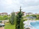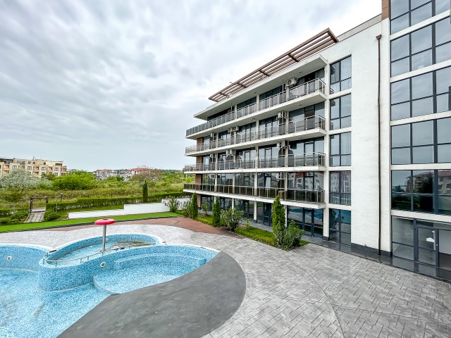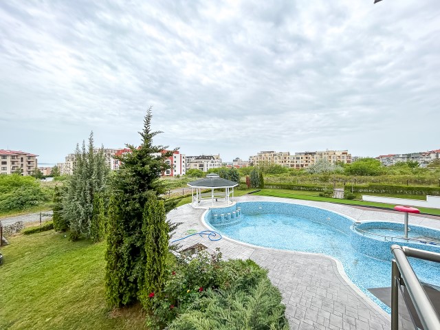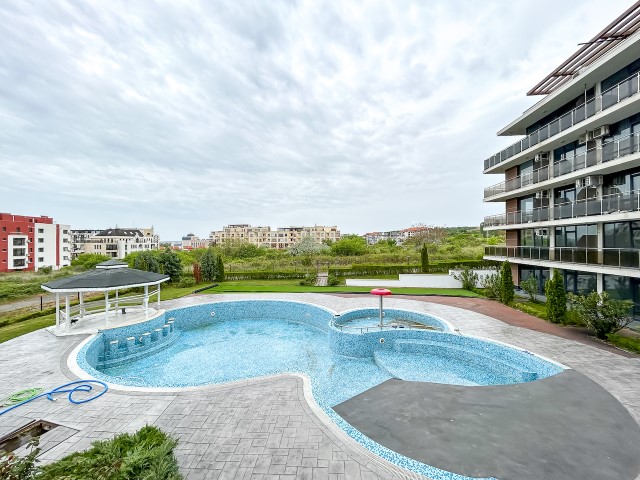 For sale a spacious, fully finished, one-bedroom apartment in a gated complex, about 500 meters away from the beach in the town of Sveti Vlas, Nesebar municipality