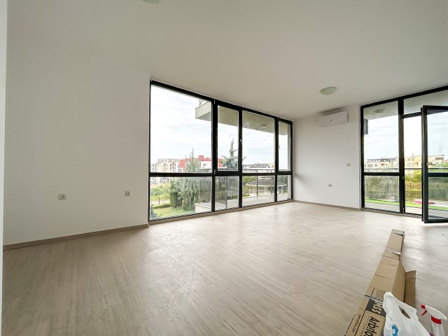 Finishing works: The apartment is fully finished - laminated floors; latex painted walls and ceilings; placed PVC joinery; placed armored entrance and MDF interior doors; sanitary unit - terracotta tiled floor, faience on the walls; installed Air conditioning in the living room.