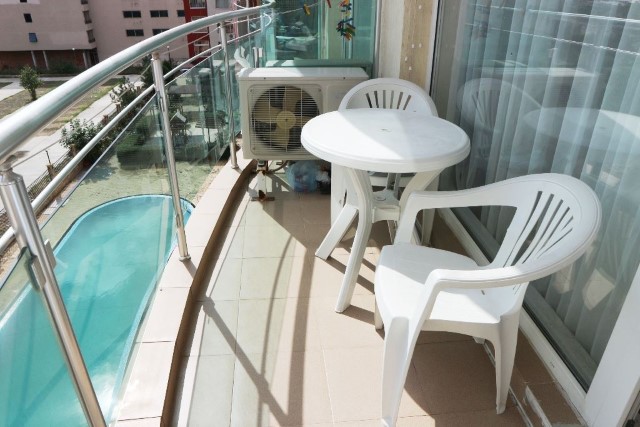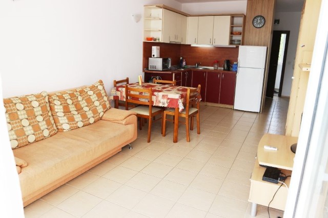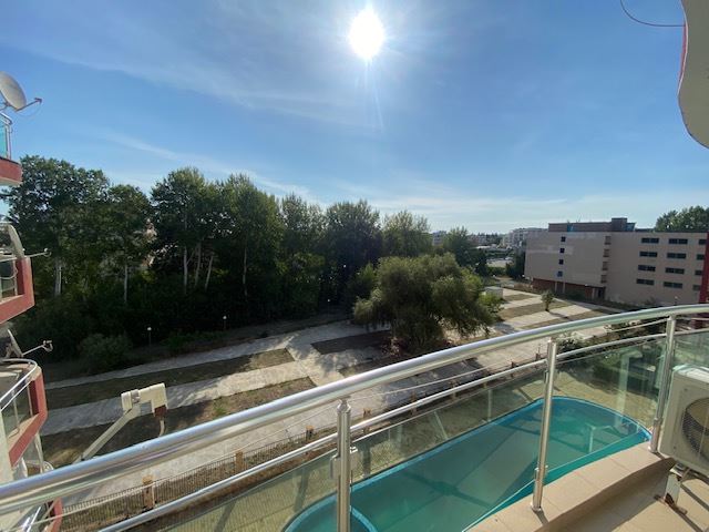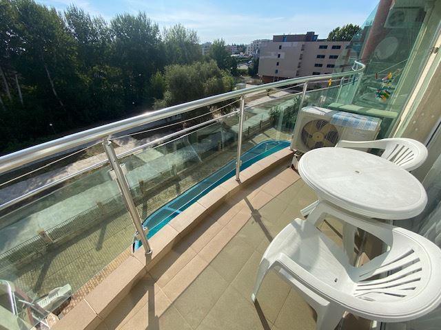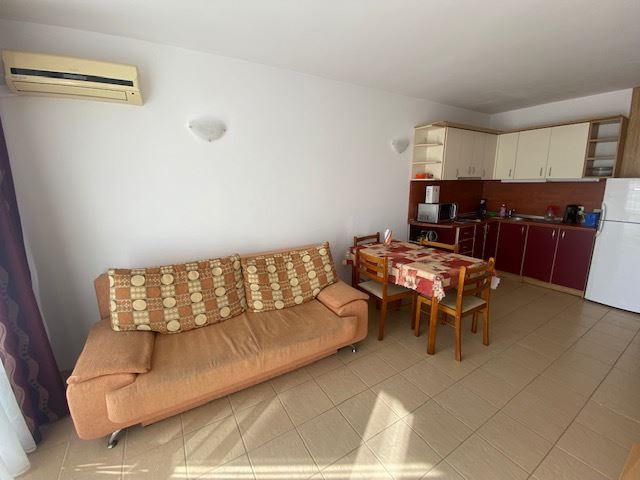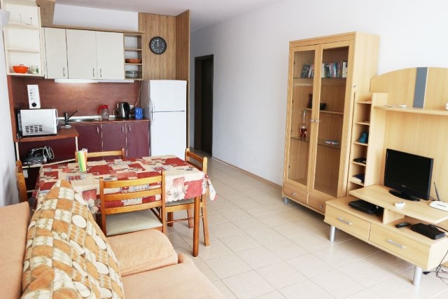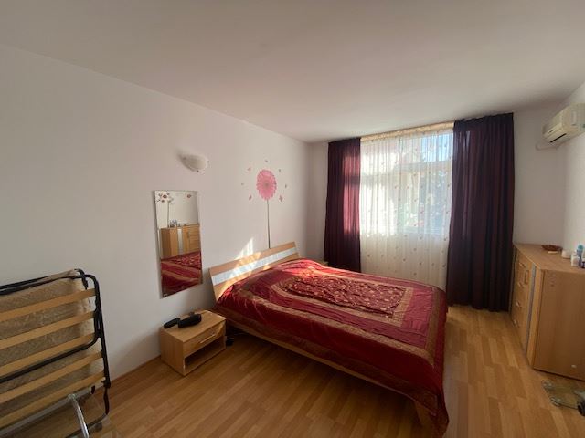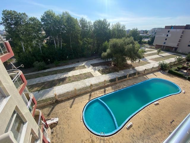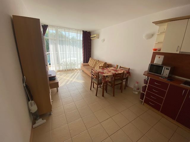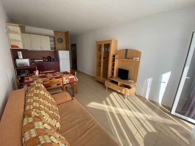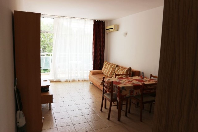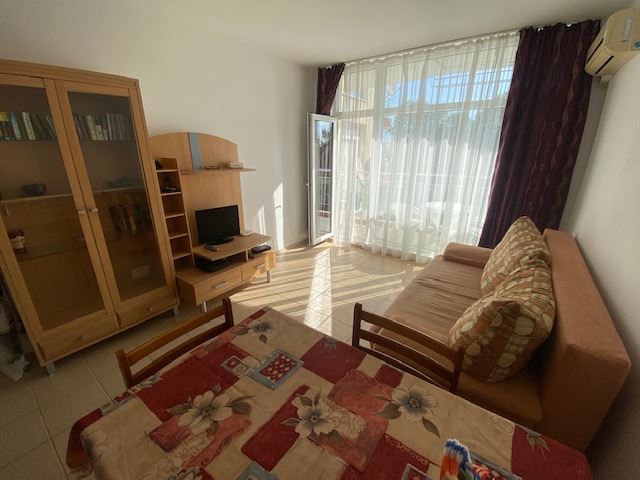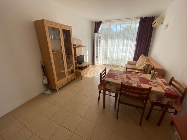 For sale a spacious, fully furnished, one-bedroom apartment in a gated complex Global Ville, about 500 meters away from the beach in Sunny Beach Resort, Nesebar municipality