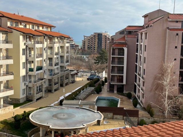 For sale a spacious, partially furnished, two-bedroom apartment in a gated complex, about 400 meters away from the beach in Sunny Beach Resort, Nesebar municipality