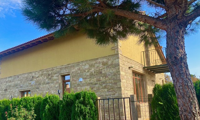 Finishing works: The house is fully finished - fine stoneware tiled/laminated/cemented floors; latex painted walls and ceilings; placed PVC joinery; placed armored entrance and MDF interior doors; sanitary units - fully finished and equipped, terracotta/fine stoneware tiled floor, faience on the walls, sanitary ware, shower cabins, water heaters; installed Air conditioning in all rooms. The facade of the house is made with decorative elements of artificial stone. The house is supplied with individual power supply - powerful three-phase voltage (15 kW) from a newly built substation and powerful water supply from a newly built street water supply (⌀110) - with high water flow, 100 Megabit internet via underground optical cable and HDTV.