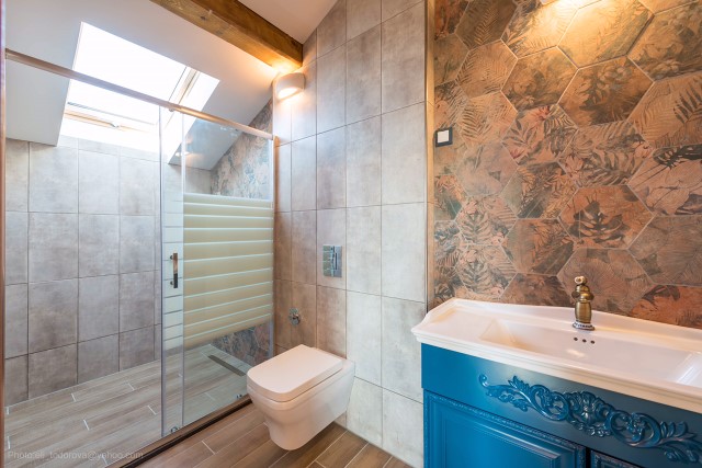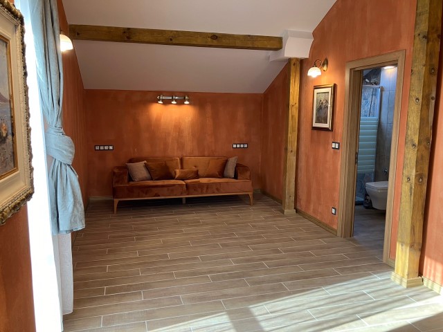 We offer for sale a suburban, new, fully furnished, two-storey house with a total built-up area of 240 sq.m and a built-up area of 99 sq.m and veranda. It has an excellent distribution, spacious rooms, two huge bedrooms, its own garage and a private plot. The house is located in a new gated complex of a total of 24 newly built identical single-family houses in an authentic Tuscan style with independent plot of lands and with a new infrastructure built. The height of the first floor of the house is 3 meters, with a feeling of air, space and light. The house has high functionality and ergonomic design. Detached property, without common parts and maintenance fees. The house has a low annual property tax and municipal waste tax. Excellent investment in property suitable for permanent living or recreation, as well as high yield rental guest house.