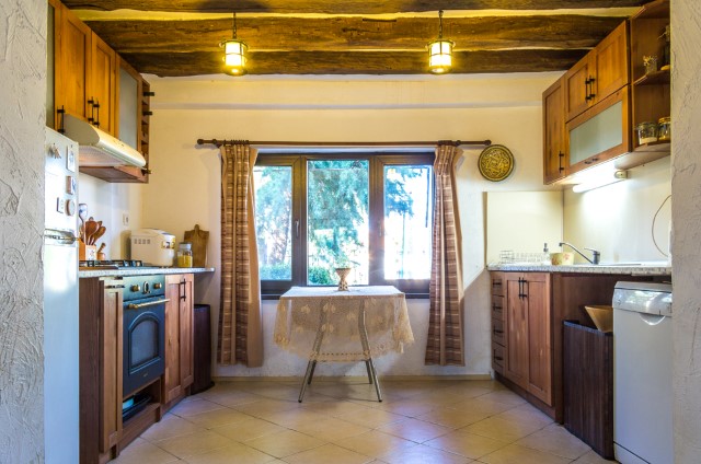 Finishing works: The house has new wiring and plumbing systems, new PVC joinery, built a an internal staircase. In 2015 is completely replaced roof with new, with 30 year warranty from Tondach. The entire first floor is with internal and external waterproofing (waterproofing of foundation, waterproofing of inside walls and putty on the floors). The walls of the first floor are made of stone and have a thickness of 45 cm. The walls of the second floor are brick and have a thickness of 25 cm. The house has wooden beams between two floors, beams have been restored and preserved by professional agents. The flooring on the first floor are new - terracotta tiles and laminate. The house is ready for living, but needs some repairs - replacing the flooring of the corridor and one of the rooms on the second floor and sanding floors of two of rooms on the second floor, replacing much of the interior doors, possibly external plaster or heat insulation of the second floor, shaping the space under the stairs. The heating is by log burning stove and central heating and warming up of water heater. It is installed a solar panel on the roof.