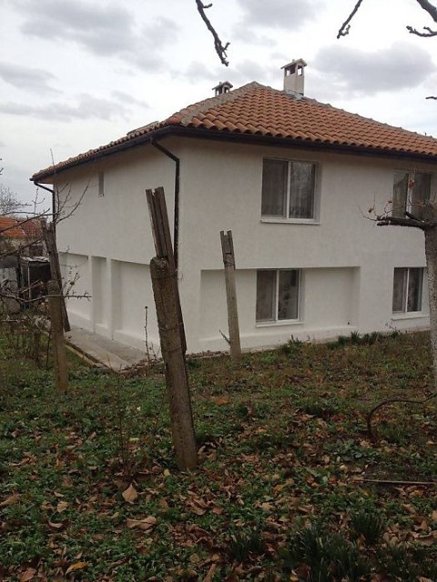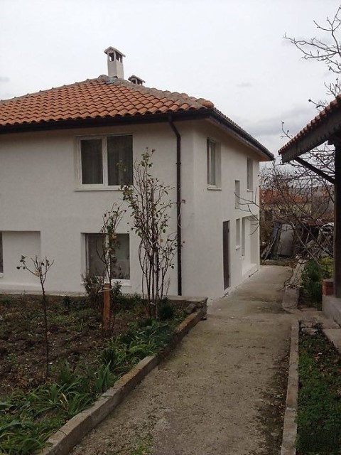 Description: We offer for sale a new. solid, two-storey house, built in 2013, with a total built-up area of 220 sq.m. In the house are installed pipes for central heating system and has an outlets for installation of solar panels. Flooring: rooms on the first floor - terracotta and laminate, rooms on the second floor - laminate. Walls - latex painted. Ceiling - wooden paneling. PVC joinery. External heat insulation of the facade. The house is connected to public infrastructure - electricity, water supply and sewerage. The house is for sale with an available furnishing.