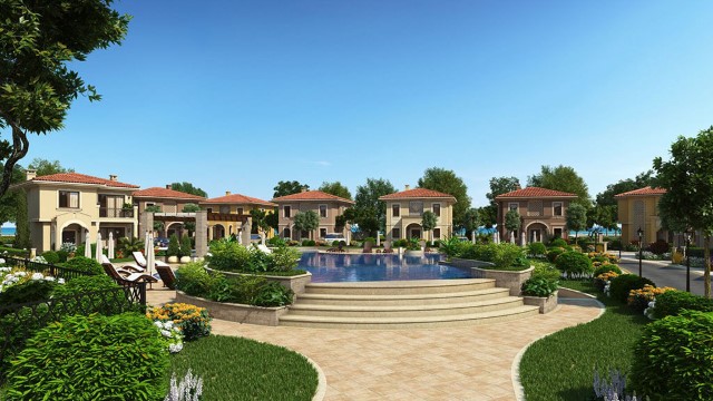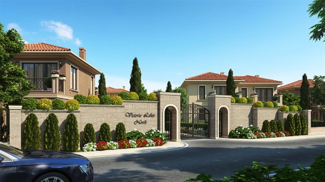 Description: Victoria Lakes North is a luxury gated complex in the Mediterranean style, consisting of 30 individually designed villas and houses, each of which has its own courtyard and parking lot, soft and warm colors, ornaments on the facades. The complex is the latest addition to Victoria Residences - The Luxury Sea View Villas. Exceptional ambiance, spacious territory and many amenities. There is a panoramic sea view from each house. The houses are set around a spacious relaxation area that will include summer house, fountain, swimming pool, beautiful park with alleys for walks and green areas, tennis court, football field, basketball playground, year-round service. The infrastructure also includes an asphalt street to the complex, a street network, sidewalks, grounds, street and park lightning, power substation, plumbing and effluent treatment plant. The electrical wiring and plumbing are made according to European quality standards. The access to the complex are under control which provides peace and security. The plants in the green areas are combined to be beautiful and at the same time to provides natural freshness during the summer and wind protection during the winter. The exterior space is designed in a manner allowing this valuable characteristic of the plants to become more and more salient. For that purpose a working irrigation system is built.