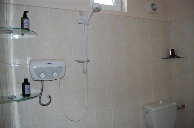 Consisting of electric shower, wc, wash and basin, small double glazed window, ceramic tiling and natural pine door.