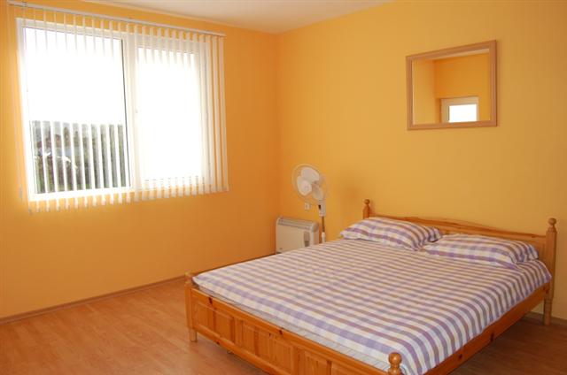 King sized bedroom, laminate flooring, 2 large double glazed windows with vertical blinds, natural pine doors, with hot/cold air-conditioner fitted, connection for sky television. Large en-suite fully fitted with electric shower and shower cubicle, small double glazed window, wc, wash and basin, ceramic tiling.
