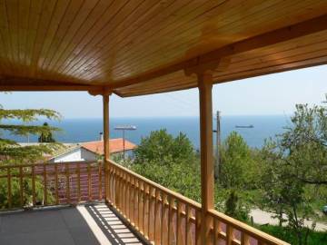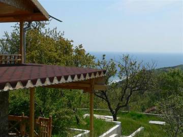 The house has two floors with an area of 65 sq.m, which is shared between: verandah, living room with dinning room and kitchen, bedroom, bathroom with wc, large terrace with lovely sea view. The yard is 700 sq.m. The garden is maintained with many fruit trees - apples, fig, apricot, almond and vines. There is a building permit.