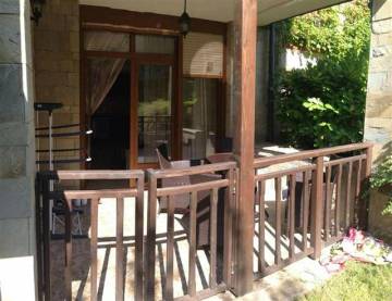 Description: The offered one-bedroom apartment is located in the elite holiday gated village "Santa Marina", which in turn is located on the waterfront over the sea, just above the famous Tsarski plazh (Royal Beach), 2 km north of the ancient town of Sozopol and 34 km south of Burgas. Picturesque pine forest that surrounds the complex, makes it even more cozy and pleasant place to live and stay. The villa where the apartment is situated, is five minutes walk from the beach and 1 minute walk to the nearest pool. The apartment has a functional distribution and nice view. The apartment consists of living room with kitchenette (18 sq.m) leading to a bedroom (about 11 sq.m), bathroom with toilet (about 5 sq.m) and a spacious veranda (11 sq.m) with a second entrance. The flooring is terracotta tiled, the walls are fine plastered and latex painted, MDF doors, PVC joinery with roller shutters. Bathroom with toilet is with terracotta on the floor, faience on the walls, fully equipped, with shower cabin. The apartment has a southeast exposure. It offers with barely used furniture, kitchen cabinets with built-in appliances, sofa bed, coffee table, TV cabinet, TV, stool, mirror, wardrobes, bedside tables, chest of drawers, air conditioners, washing machine, table and chairs on the veranda.