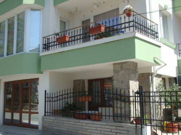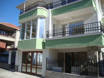 The spacious house is available for sale after recent internal and external repairs (2013). On the ground floor is situated a separate apartment with two bedrooms, living room, a fully equipped kitchen, a bathroom with toilet and a terrace. On the first floor is situated an apartment consisting of a living room, two bedrooms, a bathroom with Jacuzzi and a large terrace. The second and third floors are rented. The second floor consists of a luxurious master bedroom with ensuite sanitary unit and two bedrooms with another bathroom with toilet and a huge terrace at both of bedrooms. The attic floor consists of one bedroom, a separate toilet and a shower room. There is enough space for large storage room. All of the rooms are comfortably furnished and equipped with few refrigerators, Air conditioning, 6 TV sets, washing machine and other appliances and equipment that you can see in the photos. The heating is by a fireplace and air conditioning. Infrastructure - electricity and water supply, sewerage, Internet, cable TV, telephone. The floors are with terracotta tiles and laminate. External thermal insulation. There is permission to build an additional building with an area of 150 sq.m.