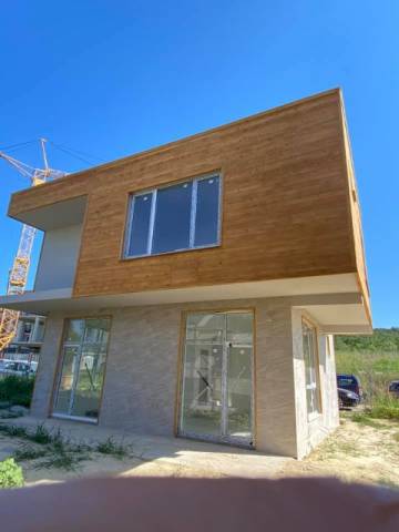 Finishing works: The houses are of high quality construction and are issued roughly finished. The facade is plastered with polymer moisture-repellent plaster, stone cladding, flat roof, energy efficiency and certified building materials of high class. Panoramic windows in each room. Lots of air and space (height of the first floor - 3,30 meters, and the second floor - 2,80 meters).