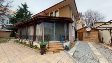 Finishing works: The house has a monolithic, reinforced concrete construction, brickwork, external thermal insulation and mineral plaster; new roof. The house is fully finished: laminated and fine stoneware tiled floors; plastered and latex painted walls; latex painted ceilings; placed PVC entrance and MDF interior doors; placed PVC joinery; wrought iron railings on the staircase; shower- and bathrooms with toilets - fully finished and equipped, terracotta tiled floor, faience on the walls, sanitary ware, bathtub, shower cabin; the heating is solved by means of a boiler and central heating with radiators in all rooms; installed Air conditioning in the living room and one of the bedrooms.