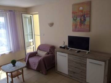 Finishing works: The apartment is fully finished - terracotta tiled floors; latex painted walls and ceilings; placed PVC joinery; placed entrance and MDF interior doors; sanitary unit - fully finished and equipped, terracotta tiled floor, faience on the walls, sanitary ware, water heater.