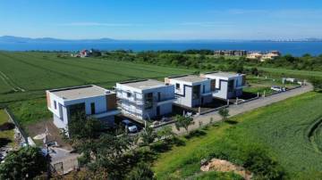 For sale a modern, luxurious, detached, two-storey houses with sea view and with own plots in a complex on the seashore, about 1 km away from the beach in Sarafovo area, the town of Pomorie, Pomorie municipality