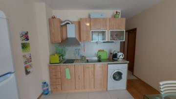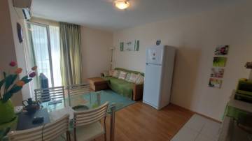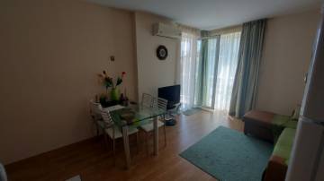 For sale a fully furnished, one-bedroom apartment with a partial sea view in a gated complex, about 150 meters away from the beach in the town of Sveti Vlas, Nesebar municipality