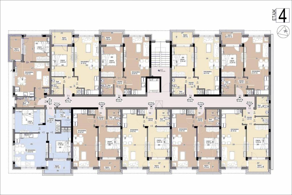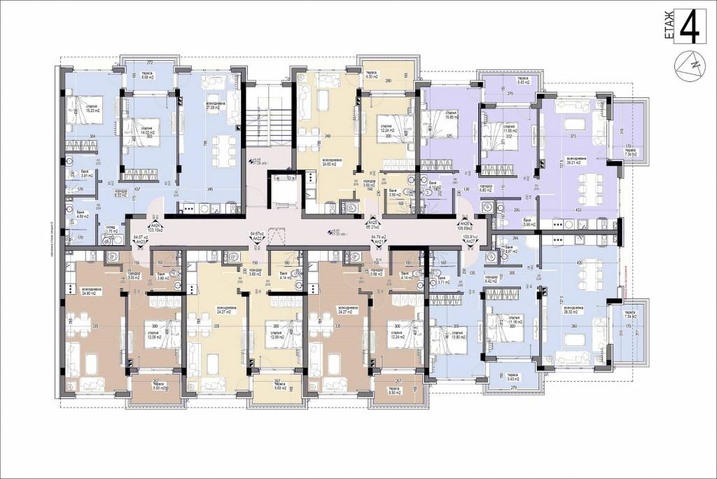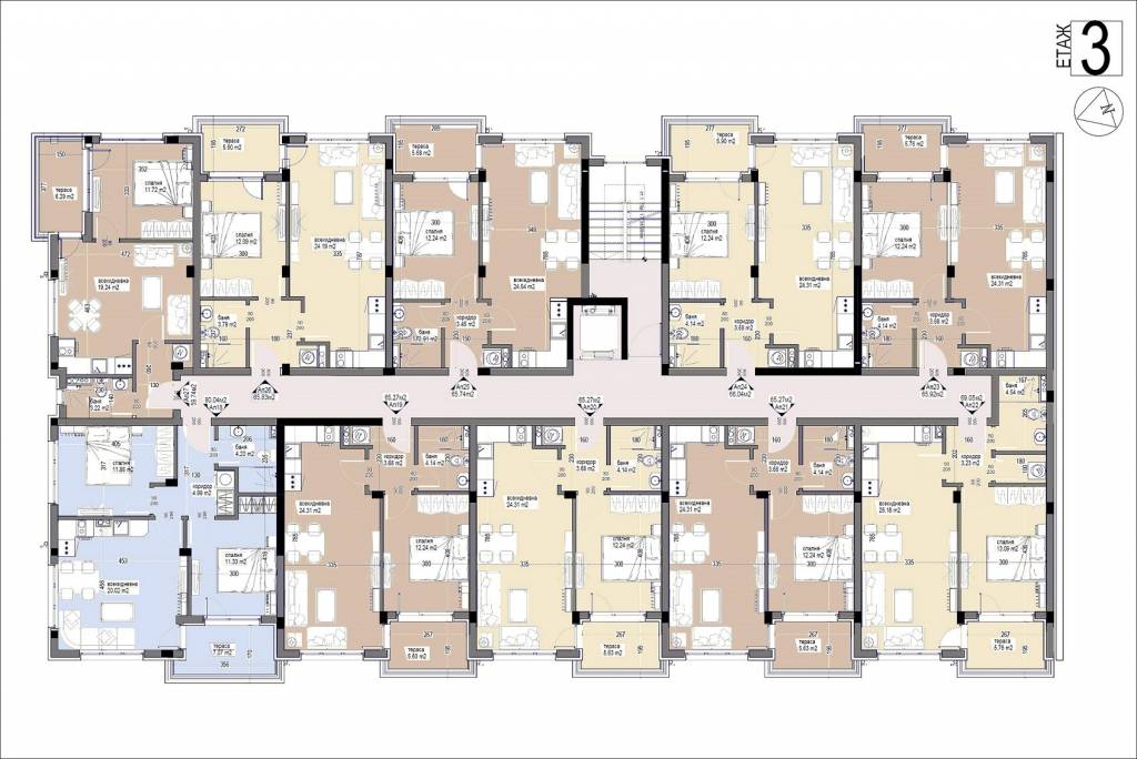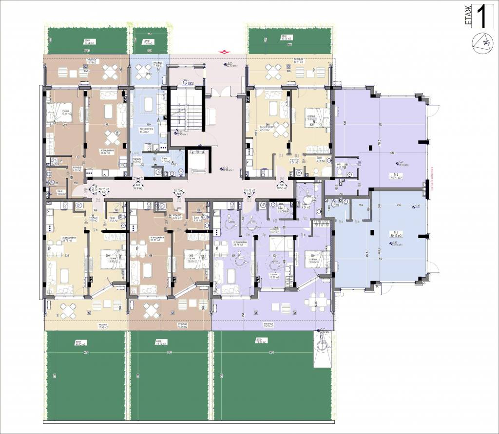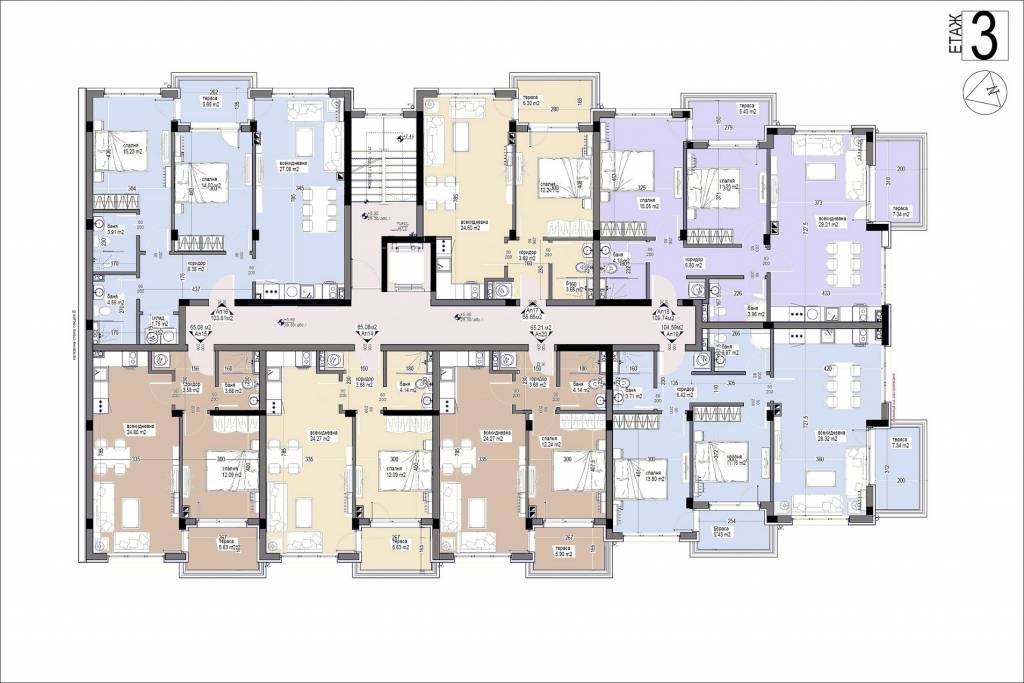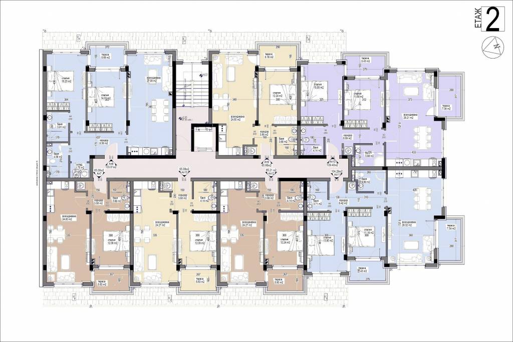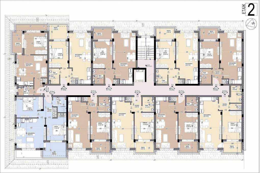 Description: The Bayview Family 2 complex will be a four-storey residential building, divided into two sections, with two separate entrances. Its vision will be identical to the other complexes in the area - low construction /4 floors/, large distances between buildings, stylish Mediterranean architecture, soft pastel tones, partial stone cladding of the facade, wrought iron railings, rich and well-maintained landscaping of the external areas and impeccable maintenance of the adjacent infrastructure. Approximately 5,000 sq.m of total built-up area will be distributed in 64 apartments. Ground floor apartments will have a covered veranda and yard. Its infrastructure will include a bicycle parking, a sports playground, a children's playground and a recreation area with gazebos. Parking in the complex will be provided by 66 open parking lots and 7 garages, and can be purchased for an additional fee. Two shops are also planned. The territory of the complex will be beautifully landscaped and well maintained. In the construction process, high quality materials will be used, as well as modern technologies, ensuring flawless execution and trouble-free operation of the building. The apartments are issued roughly finished. There is a possibility for full completion at an additional cost.