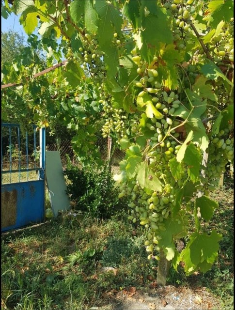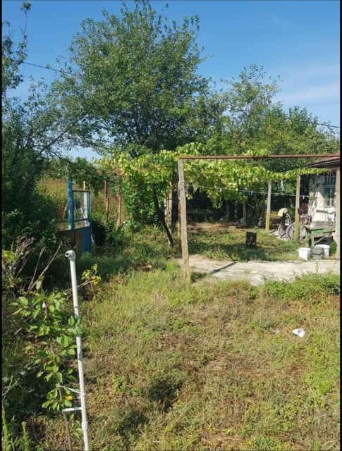 Yard: The plot of land is with an area of 1000 sq.m, fenced. There are small summer kitchen, outbuilding for garden tools, metal frame for the greenhouse in the yard. There are the following fruit trees and shrubs in the yard: three quinces, three walnuts, mulberry, apple, plum, sour cherry, apricot, peach, pear, plum, raspberries, black currants and fruiting vine trellis.