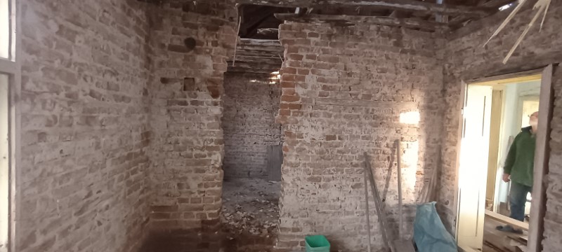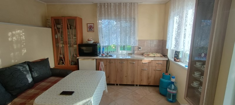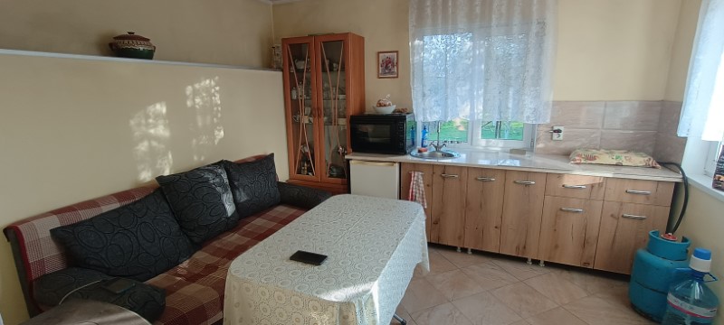 Finishing works: Main house - needs complete renovation and modernization. The guest house is completely renovated, with brickwork, new roof, external thermal insulation of the facade. The house is fully finished - terracotta tiled floors; latex painted walls and ceilings; placed PVC joinery; placed PVC entrances and MDF interior doors; sanitary unit - fully finished and equipped, terracotta tiled floor, faience on the walls, sanitary ware, washing machine, water heater; new wiring and plumbing and sewerage. by a log burning stove.